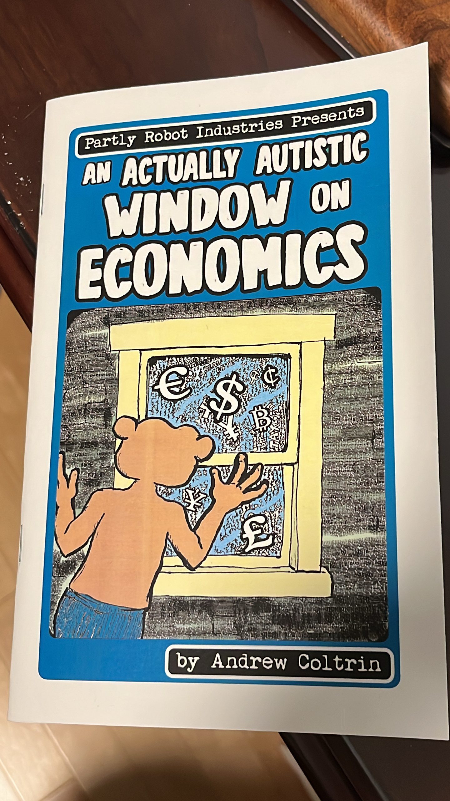 My new zine is finally done and ready for the world. The Kickstarter campaign failed, but that won’t stop me! The finished product with the finished title, An Actually Autistic Window on Economics, is live at my webstore. Use the code KICKED between now and December 19th to get 25% off your entire order.